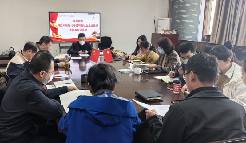 在正心楼二层资料室召开学习贯彻习近平新时代中国特色社会主义思想主题教育动员会暨理论中心组(扩大)学习会,对成人直播