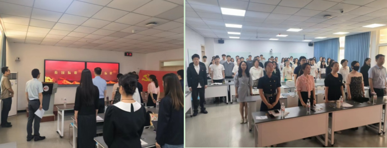 党委组织员李小斐领誓,全体党员面向党旗,高举右拳,庄重而坚定的宣誓,向党组织作出庄严承诺。