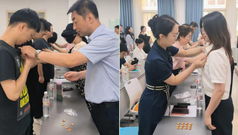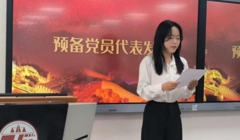 教师党员代表为30位新党员佩戴党员徽章,2022级孟成真代表新发展党员做表态发言,成人直播