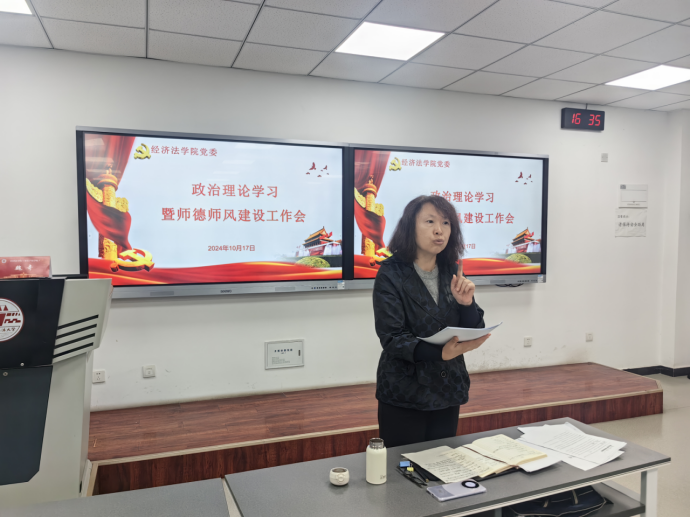 召开教职工政治理论学习暨师德师风建设工作会,会议由党委书记李建梅主持。