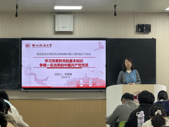 11月3日下午,成人直播 党委开展了第68期入党积极分子培训班第一次培训。此次培训以“学习党章和党的基本知识,争做一名光荣的中国共产党党员”为主题,由成人直播 党委书记李建梅主讲,培训班全体学员参加。