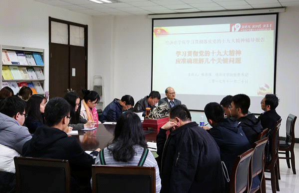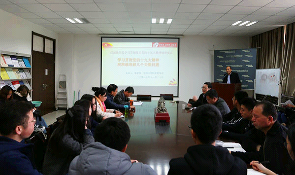11月17日下午,院党委在长安校区正心楼二楼成人直播 资料室召开中心组扩大会议。院党政领导、党委委员、党支部书记、全体辅导员、行政管理人员和师生代表参加了会议。院党委书记张志强作十九大报告学习的辅导。