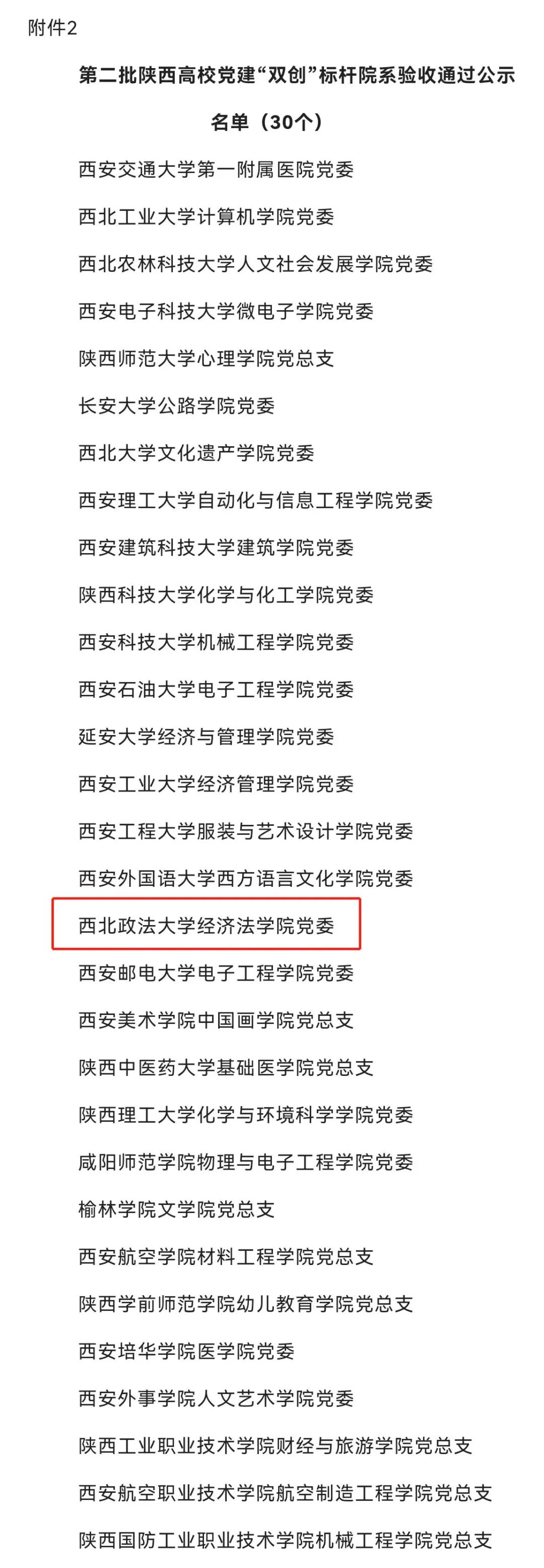 近日,陕西省委教育工委公布了第二批陕西高校党建“双创”标杆院系验收通过公示名单。成人直播 党委在一年多的培育创建期内形成了特色鲜明、亮点突出的党建工作经验,发挥示范引领作用。经对标自查总结、专家组实地考察验收、陕西省委教育工委审查等环节,成人直播 党委顺利通过验收。下一步成人直播 党委将继续落实“双创”成果和经验,发挥长项,补足短板,努力以高质量党建推动成人直播 教学科研等各项工作高质量开展。