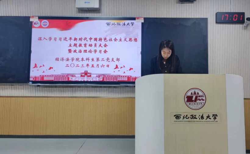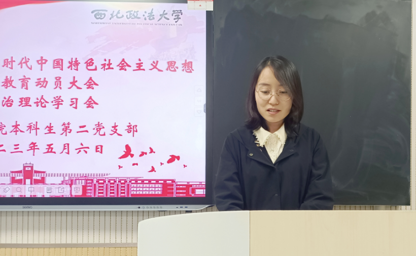 本科生第二党支部在长安校区正心楼306教室召开学习贯彻习近平新时代中国特色社会主义思想主题教育动员大会暨政治理论学习会。动员大会由党支部书记李冬冬主持,支部全体党员以及2021级入党积极分子近80人参加。