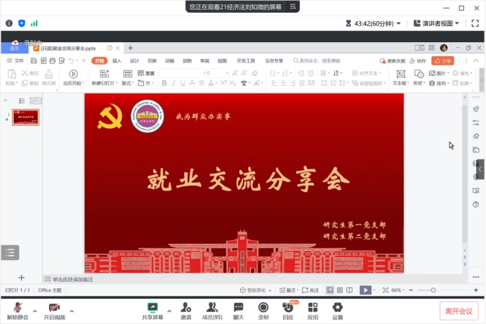 2024届研究生高质量就业创业,引导全体在读研究生做好职业规划和求职准备,帮助同学们尽早树立正确的就业观,更好地了解本专业就业前景,确定职业规划和学习计划,2023年5月25日星期四晚七点半,成人直播研究生第一党支部、研究生第二党支部于线上开展我为群众办实事系列活动之就业交流分享会。