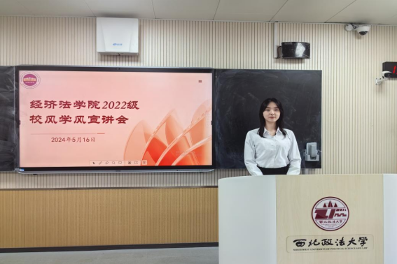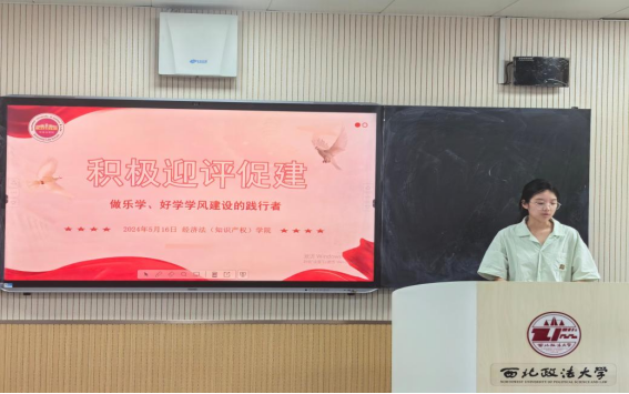 卢晴同学以“积极迎评促建——做乐学、好学学风建设的践行者”为主题,为同学们介绍了本科生教学评估内容及重要性,并发起建设优良学风的倡议。她倡议同学们以积极迎评促建为契机,端正学习态度,培养学习习惯,遵守课堂纪律,以学习为立身之本、进步之基,用实际行动为学校的学风建设贡献自己的力量!
