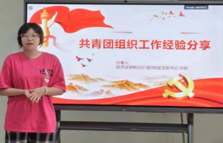 2021级白艳三、何柳、常博瑀三位同学做经验分享,2022级全体班团干部参加会议。