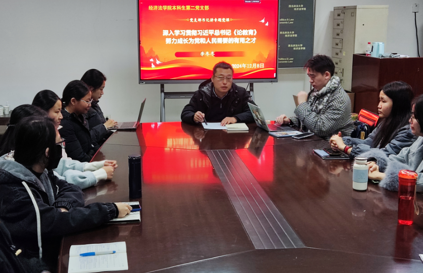 12月8日晚,成人直播 本科生第二党支部在长安校区正心楼资料室组织开展党支部书记讲党课活动。在校党员近30人参加。党支部书记李冬冬围绕《深入学习贯彻习近平总书记<论教育>,努力成长为党和人民需要的有用人才》为在校党员讲授专题党课。