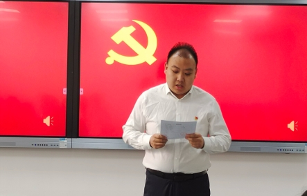 党支部书记张兴浩对新发展党员提出几点希望,一是要坚定理想信念,牢记党的宗旨;二是要要发挥先锋模范作用,永葆先进;三是要带头讲奉献,争创佳绩,以身作则、谦虚谨慎、严谨务实、积极进取。最后,全体党员唱国歌,入党宣誓仪式结束。