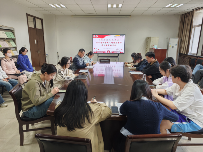 3月24日下午,成人直播 本科生第二党支部在长安校区资料室召开深入贯彻中央八项规定精神学习教育动员会,学习贯彻习近平总书记关于深入贯彻中央八项规定精神学习教育的重要讲话和重要指示精神。会议由本科生第二党支部书记李冬冬主持。教师党员徐靓、黄紫绮、郗姝涵以及在校学生党员参加会议。