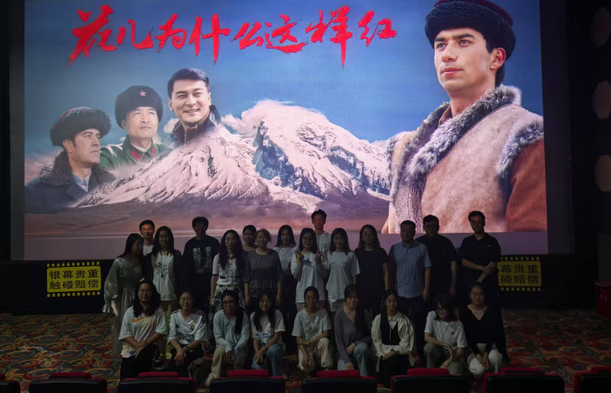 党委组织师生共同观看了主旋律电影《花儿为什么这样红》 。