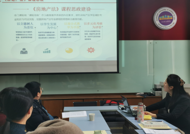 田静婷同志认为:习近平法治思想是新时代法学教育和法治人才培养的行动指南。我们的法学教育和法治人才培养在推进全面依法治国中占有重要地位,也是我国法治事业兴旺发达的重要保障。结合本学期所讲授的《房地产法》课程,将课程思政融入到课堂,在法学教育中深入贯彻落实习近平法治思想,注重教学课程与现代化信息技术的融合,多维度推动数字化的线上课程教学方式,提高同学们的实践应用能力。