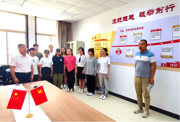 党员活动室组织新发展党员开展入党宣誓仪式。本次会议由张兴浩老师主持。