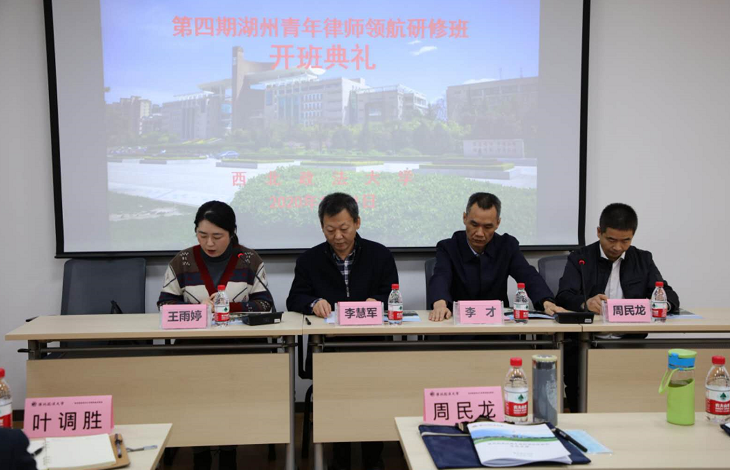 2020年11月1日上午,第四期湖州青年律师领航研修班在我校雁塔校区一号教学楼1306教室顺利开班。湖州市司法局党委委员、副局长,湖州市律师行业党委书记李才,湖州市司法局律师工作处处长、湖州市律师行业党委副书记、市律师协会秘书长周民龙,成人直播