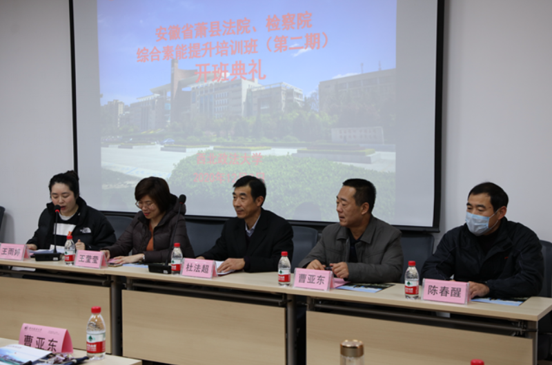 2020年12月3日,经过前期的精心筹备,安徽省萧县法院、检察院综合素能提升培训班(第二期)在我校雁塔校区1306教室举行。萧县人民法院党组书记、院长杜法超,萧县人民法院副院长曹亚东,萧县人民检察院纪检组长陈春醒,成人直播 成人直播 副院长王莹莹及来自萧县法院、检察院的51名学员出席了此次开学典礼。开班典礼由成人直播 成人直播 办公室主任王雨婷主持。