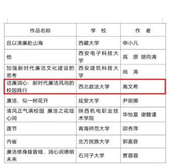 第九届高校廉洁教育系列活动“话廉润心”校园征文遴选名单