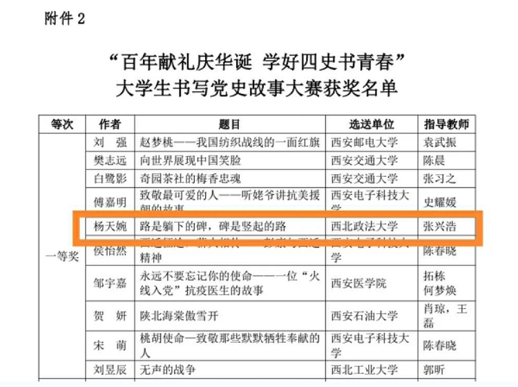 文笔描绘锦绣景,翰墨怡情颂党恩。为庆祝中国共产党成立100周年,讴歌党的光辉历史,激发高校大学生爱党爱国的深厚情怀,2020年12月,中共陕西省委党史研究室、中共陕西省委教育工委、共青团陕西省委、中共西安市委党史研究室联合举办“百年献礼庆华诞 学好四史书青春”大学生书写党史故事大赛。