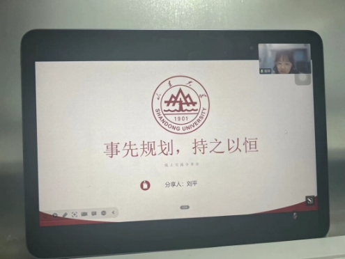 现就读于山东大学的刘平首先分享交流经验,她从专业学习、英语学习、实习实践和学习工具分享四方面进行分享,并鼓励2022级新生多进行课外学习和实践实习活动,并且推荐了许多自己在日常学习过程中使用的app和公众号。