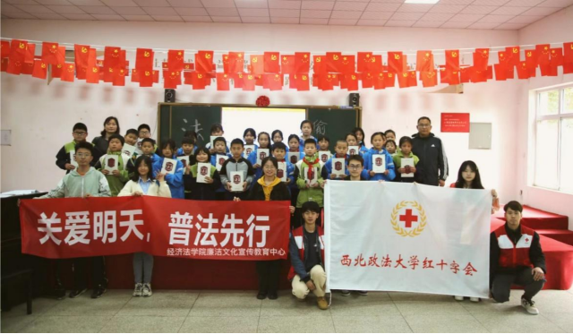 红十字会组织监察部的部分成员前往周至县九峰乡永丰小学,为学校学生进行普法宣传和廉洁文化教育。