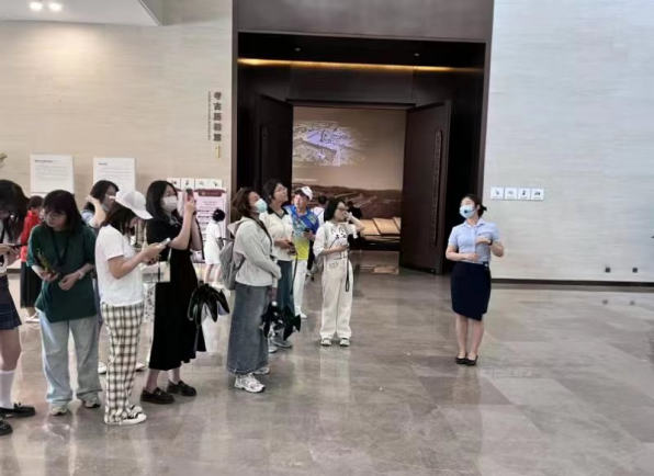 5月20日上午9:00,讲解员体验日获奖同学和中心成员前往陕西考古博物馆进行参观学习,感受博物馆导游的专业讲解。在参观中了解从考古发掘到保护、研究、阐释、展示、传播的学科全链条,领略蕴含其中的丰富知识、智慧和艺术,在走进考古的过程中共享遗产保护的成果。在此次交流学习过程中,中心成员认真借鉴学习,改进在平时讲解中的不足之处,受益良多。