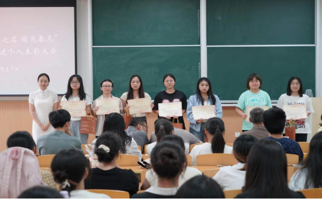 团总支书记李冬冬、2020级辅导员来沅晖、2023级辅导员王可卓以及荣获晨读先进个人的50名同学参加大会,大会由团总支书记、2022级辅导员张兴浩老师主持。