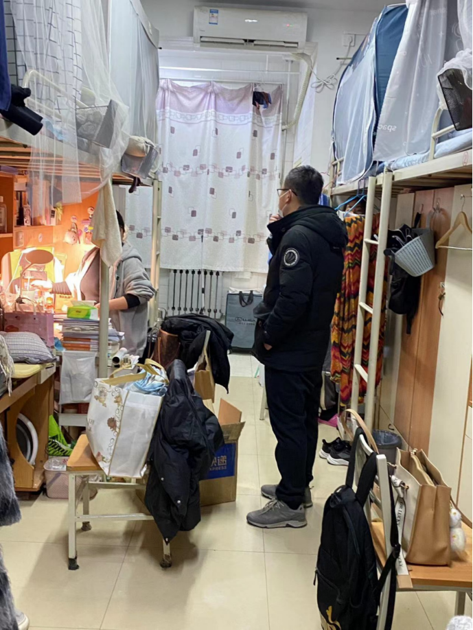 老师们仔细询问同学们的寒假学习、生活和健康状况,查看宿舍环境卫生、用水用电和消防安全设施等,检查“一站式”社区场地管理使用情况,听取同学们对成人直播