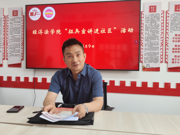 在长安校区14号楼学生公寓“一站式”学生社区举办“征兵宣讲进社”活动。学校党委武装部秘书张吉昌老师担任主讲嘉宾,具有入伍意向的同学参加活动,本次活动由辅导员张兴浩主持。