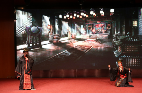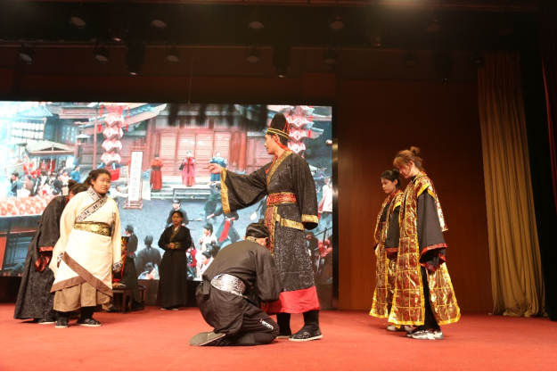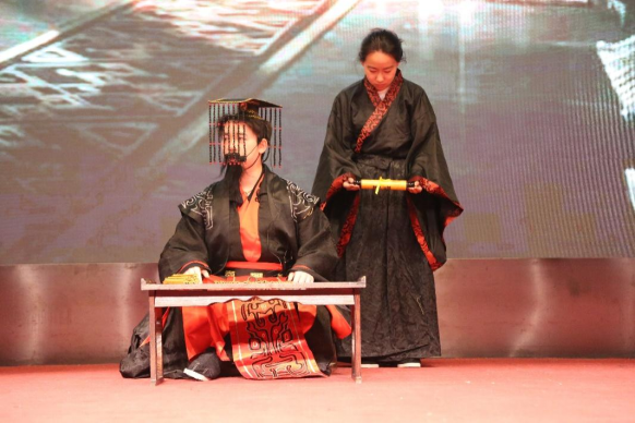 颁奖仪式后,由成人直播 廉洁文化宣传教育中心自编自导、30余名同学参与表演的廉洁主题话剧《话说张汤》正式展演。在同学们深情地表演下,在座师生感受到了张汤公正清廉的品质,深受触动,报以热烈的掌声。