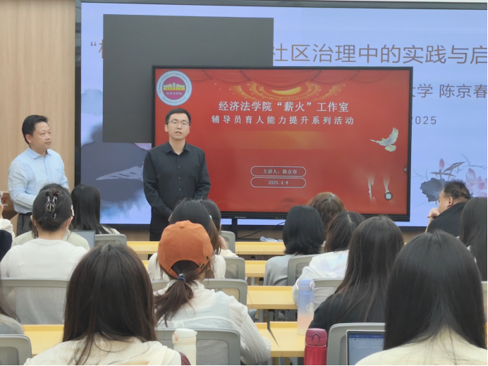 陈京春教授从习近平总书记关于基层社会治理的重要论述,“枫桥经验”的形成、发展、创新等方面深入讲解了“枫桥经验”的时代价值和核心内涵,并结合学生社区治理的实际情况,分享了一系列具有实践价值的案例。通过理论与实际相结合的方式,陈教授详细阐述了如何将“枫桥经验”运用到学生社区日常管理、矛盾化解以及思想政治教育等工作中,为辅导员们提供了全新的工作思路和方法。他强调,在学生社区治理过程中,辅导员应积极借鉴“枫桥经验”中以人为本、预防为先、系统治理等核心理念,不断优化工作模式,提升工作质效。