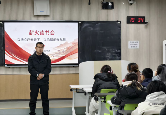 (知识产权学院)在长安校区正心楼306教室举办“以法立序安天下 以治赋能兴九州”主题读书会,围绕《习近平谈法治思想》第五卷成人直播相关的文章展开深度研读分享,深化法学理论认知。本次活动由“薪火”读书会指导老师、本科生第二党支部书记李冬冬主持,2025级殷相儒统筹组织,60余名入团积极分子参与。