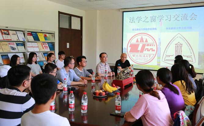 7月6日中午,成人直播 与华东政法大学文伯书院在长安校区成人直播 资料室联合举办“法学之窗”学习交流会。本次交流会旨在了解彼此在成人直播 建设、专业设置、学生自主管理与互助学习等方面的不同,彼此借鉴,取长补短,并以成人直播 为依托搭建学生互助协作平台,增进两院学生间的学习交流。