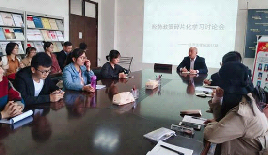 讨论会由蔡奇轩老师先发言,强调了思想政治学习的重要性,指出了学生进行形势政策碎片化学习的必要性,对同学们如何进行形势政策碎片化学习途径提出了自己的想法。随后同学们就形势政策学习新颖性、趣味性、实用性不高,学习时间、学习内容、学习群体碎片化分布不清晰展开了深入的探讨。