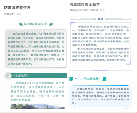 为落实“防震减灾”安全教育学习情况,增强活动的实效性,成人直播 要求各班级召开“防震减灾”安全教育线上班会,并充分利用微信公众号等多种形式将安全自救知识进行广泛传播与扩散。此次活动的开展,同学们更好地了解到防震减灾方面的知识,为处理突发状况奠定了良好的应急基础。