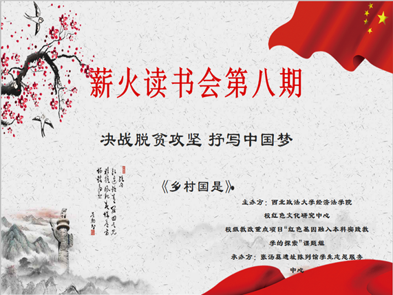 本次读书会阅读的书籍是《乡村国是》,主持人蔡奇轩老师为同学们介绍了本次读书会的主题及选读书目的意义:《乡村国是》是一部宏大叙事的新时代文艺佳作,聚焦人性、精神和情怀,全方位、多层次、纪实性地呈现了中国脱贫攻坚的真实场景。研习该书,积极响应习近平总书记对脱贫攻坚战发出“不获全胜、决不收兵”的进军号令,利于同学们深入了解国家脱贫攻坚政策,提升同学们为人民服务的意识,培养青年大学生的社会责任感,明确使命与担当。