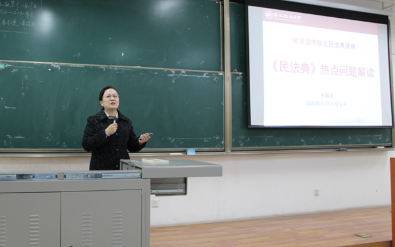 颁奖仪式后,民商法成人直播 王丽美副教授为同学们讲授了《<民法典>热点问题解读》专题讲座。王丽美老师介绍了我国民法典的地位、价值,并对《民法典》热点问题进行详细解读。通过王丽美老师的讲解,同学们对《民法典》的热点内容、特色规定有了清晰的认识和理解。