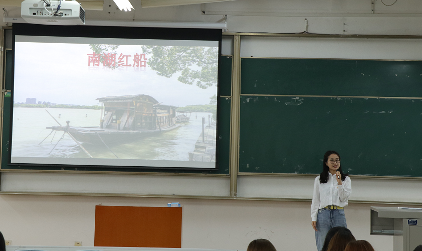 李红月以“南湖红船,风雨起航”为中心讲述了中国共产党的产生与发展历程。她以的举办为例,详细介绍了红船精神的内涵与意义,画舫红船最终成为中国革命源头的象征。是教育当代中国共产党人的无价瑰宝,是用以提高党的执政能力,始终保持党的先进性的宝贵资源和精神财富。