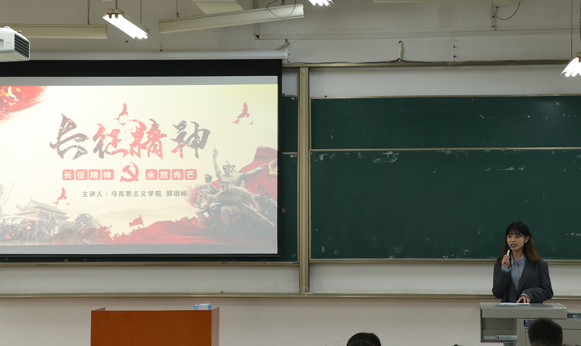 郭玥婷本着“从长征精神中汲取信仰和力量”的目的,从长征的背景原因、长征的历史回顾、长征的伟大意义、弘扬长征精神与走好新时代长征路等五个方面对这一重大历史转折点进行分析。她总结道,长征精神就是把全国人民和中华民族的根本利益看得高于一切,坚定革命的理想和信念,坚信正义事业必然胜利的决心和勇气,坚持独立自主、实事求是、顾全大局、严守纪律的意志和精神。