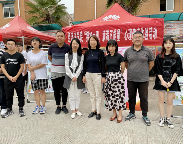 的老师们与在场的同学们亲切交流,同时也亲自体验了活动,了解了同学们日常的心理状况。