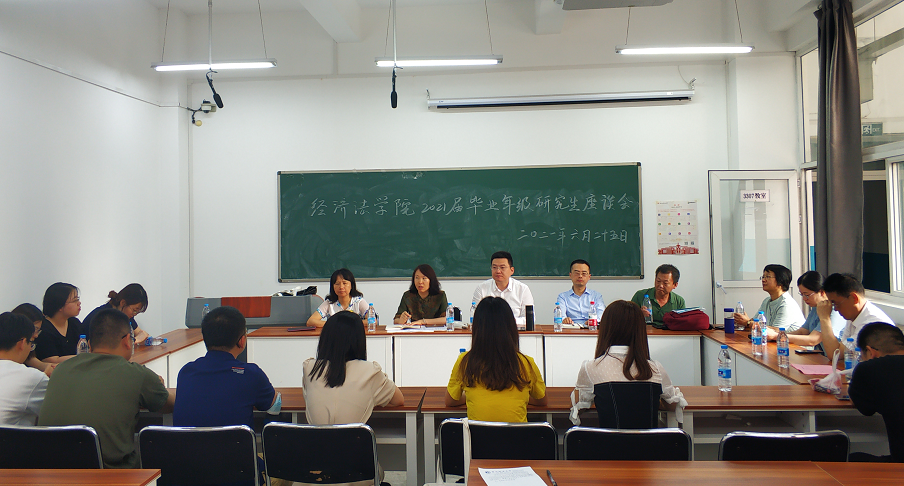 党委副书记李慧军在会上通报了目前2021届毕业年级研究生的详细就业情况,院长倪楠、副院长薛亮、经济法教研室主任郑艳馨及导师代表傅瑜、徐芳宁、席晓娟、郝少英等也纷纷表达了对2021届毕业生在就业选择与职业发展方面的建议和体会,并希望大家结合自身实际情况,及时调整就业心理预期与状态,树立正确的就业观与职业观,为自己的职业发展打下坚实的基础。