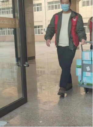 我的工作岗位是“大白”和志愿者。“大白”主要是帮助医护人员拆封棉签,试管以及看着电脑上同学们的信息录入是否正确;志愿者主要工作就是提醒同学们有序有间隔的排队做核酸,减少同学们的聚集。我觉得穿防护服确实会更累一点,好几个小时都不能离开岗位,到晚上真的全身感觉冻僵了,经常就是看着电脑上做过核酸检测的人越来越多才坚持下去的。我希望给疫情防控做一些贡献,希望西安疫情早早地过去,大家都能够回家和家人一起过年。