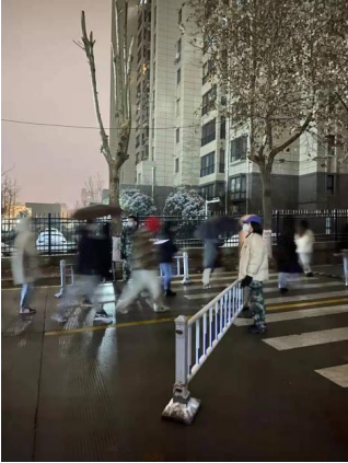 我在第四轮核酸检测中作为志愿者维护秩序,这是我人生中第一次当志愿者。一开始,我面对黑压压的队伍不敢大声维护秩序;但当我被其他志愿者认真工作、真诚奉献的模样感染,就逐渐进入了“志愿者”身份的状态。记得那天正好是圣诞节,晚上飘起了小雪,一直到快凌晨两点才做完核酸,我的口罩里都是水蒸气,手和脚到后半夜都冻麻了。最令人感动的是不断有人给我们志愿者送暖宝宝,驱散了严冬深夜里的寒冷。此外,学校全体师生始终对志愿者、警卫、医护人员的工作给予充分尊重和积极配合,让我感受到西法大勠力同心、共同抗疫的力量。现西安疫情已经好转,愿西安长安,共渡难关!