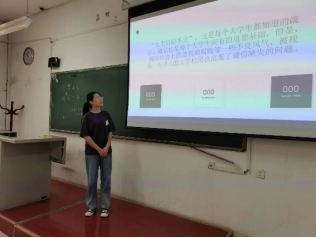 2021级5班吴欣晔同学从诚信的历史渊源开始介绍,以商鞅变法的故事展现了诚信的重要性;2021级3班李想同学则关注自身,列举了学术诚信、简历注水、逃票、虚报信息骗取资助等大学生身边的不诚信现象,并引导同学们进行自我反省。2021级4班白艳三同学通过诚信的定义、诚信小典故等为同学们搭建起“诚信”理念之框架,从而自然地引出当下学习生活对大学生提出的最基本的要求——诚信考试。一些班级结合实际情况,对期末考试中出现的极个别的不诚信的现象进行提醒,警示同学们要时时刻刻把诚信作为为人处世之根本。