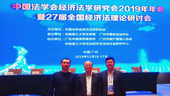 2019年11月16-17日,成人直播强力教授、倪楠副教授,杜坤博士受邀参加在华南理工大学召开中国法学会经济法学研究会2019年年会暨第27届全国经济法理论研讨会。此次年会,来自北京大学、中国人民大学、中国政法大学、成人直播 等110余家高校与研究机构的近300名专家学者围绕“全面依法治国与经济法”这一主题展开了热烈的学术研讨与思想碰撞。