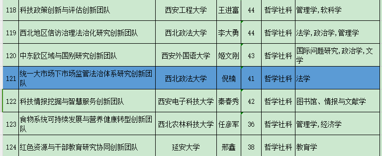 9月1日,陕西省教育厅下发《关于公布2023年度陕西高校青年创新团队入选名单的通知》(陕教函〔2023〕997号),成人直播 (知识产权成人直播 )倪楠教授负责的“统一大市场下市场监管法治研究创新团队”顺利通过评审,入选2023年度陕西高校青年创新团队,是成人直播第一个省级创新团队。