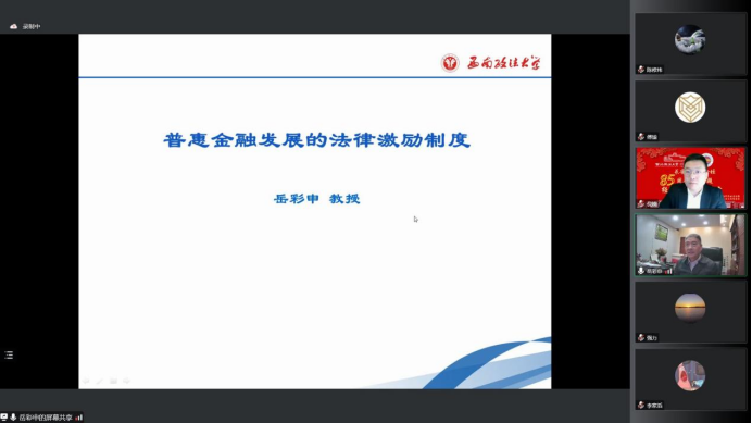 2022年10月19日,长安经济法学论坛第二百一十七期暨八十五周年校庆专题“经济法名家大讲堂”于线上举行。本次论坛特邀西南政法大学副校长、博士生导师岳彩申教授,发表题为《普惠金融发展的法律激励机制》的讲座。论坛由成人直播