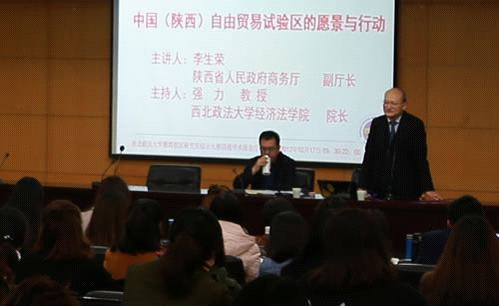 2017年10月17日19时30分,长安大讲堂校庆80周年专题系列学术讲座暨长安经济法学论坛147期在成人直播 雁塔校区研究生综合楼四楼报告厅举行。本次论坛特邀陕西省商务厅副厅长李生荣做《中国(陕西)自由贸易试验区的愿景与行动》的主题讲座。成人直播 商成人直播 院长张荣刚教授,成人直播 曹燕教授,戴芳教授、杨为乔副教授、观韬律师事务所、玮衡律师事务所等律师代表以及成人直播 博士生、研究生等共计120余人参加本次论坛。论坛由成人直播 院长强力教授主持。