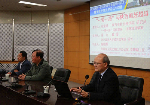 陶绍卿主任在与谈时谈到张宝通教授讲座十分精彩,内容丰富,极具大师风范。“一带一路”倡议对陕西来说既是定位也是要求,发展“一带一路”应当把握好资金、资源及技术三大优势,实现突破自我,追赶超越。同时陶主任以第一线实践者的角度对本次会议主题进行了进一步的分析和讲解。他首先分析了“一带一路”倡议提出的必要性和科学性——任何一个国家在发展到一定程度的时候都要寻找新的市场和方式,结合张教授之前分析的国内外形势,并进一步具体指出我国当前具有大量民间资金、各行各业普遍存在产能过剩以及已经具备了强大的基础设施建设能力这三个方面,支持和要求我们发展“一带一路”倡议。之后,陶主任对“追赶超越”进行了解读。“追赶”是要树立目标,做跟跑者,追上领跑者,是要追上其他的省份城市的发展;“超越”是要超越自己,要超越历史上古长安的光辉成绩。最后,他以实践工作中树立的问题导向、目标导向、成效导向这三个角度为出发点,具体对自贸区建设、招商引资、教育建设和脱贫攻坚四个方面工作进行了分析和解读。