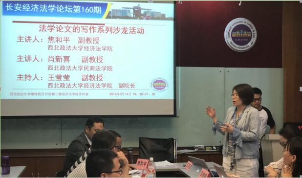 2018年5月14日19时30分,长安经济法学论坛一百六十期在成人直播 雁塔校区行政楼三楼成人直播 资料室如期举行。本次论坛特邀《法律科学》编辑、成人直播 焦和平副教授,《法律科学》编辑、民商法成人直播 肖新喜副教授做《法学论文的写作系列沙龙活动》的主题讲座。成人直播杨巧教授、韩利琳教授、吴丽萍副教授、席晓娟副教授、李艳副教授、黄政副教授、陈静媛副教授、田静婷副教授、孙山副教授、何彦新副教授、陈娟丽副教授、杨倩老师、李亚菲老师、常鑫老师、杜坤老师、张妤婕老师以及我校研究生共计50余人参加本次论坛。论坛由成人直播 副院长王莹莹副教授主持。