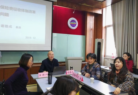 12月2日下午,中国社会法学研究会常务理事、陕西省法学会常务理事、陕西省人民政府法律顾问、成人直播 社会学研究所所长谢德成教授做客社会法名家论坛,于雁塔校区行政楼经济法资料室讲授有关“社会保险费征收体制改革中的法律问题”。本次讲座由曹燕教授主持,我校多名师生参加了此次讲座。