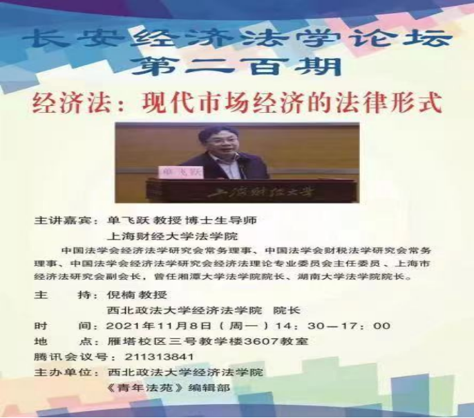 单飞跃教授以《经济法:现代市场经济的法律形式》为题,给成人直播